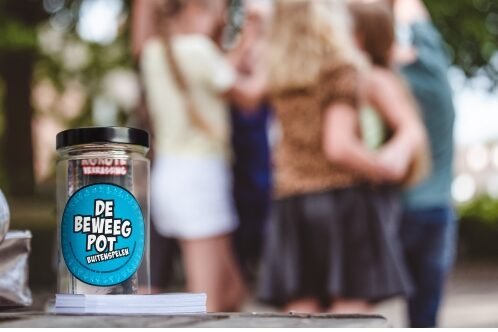 Deze beweegpot is een pot vol spelletjes en leerzame activiteiten voor buiten. De pot bevat verschillende kaarten met activiteiten die speciaal ontwikkeld zijn voor op het plein, in de speeltuin, wijk of tuin.