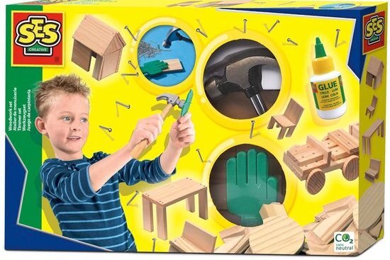 Ideaal voor kids vanaf 5 jaar om motoriek en technisch inzicht te ontwikkelen, terwijl ze op een veilige en leuke manier leren timmeren. Klaar voor een avontuur in de werkplaats?