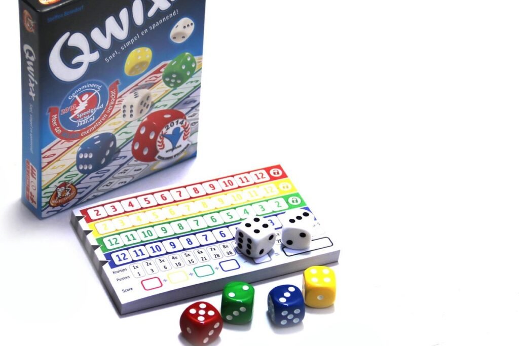 In Qwixx dobbelspel dobbelt iedereen tegelijk en kun je meteen mee doen! Kruis getallen aan op je scoreblad voor meer punten. Het spel is snel uitgelegd en blijft spannend tot het einde. Doe mee en voel de Qwixx-koorts!